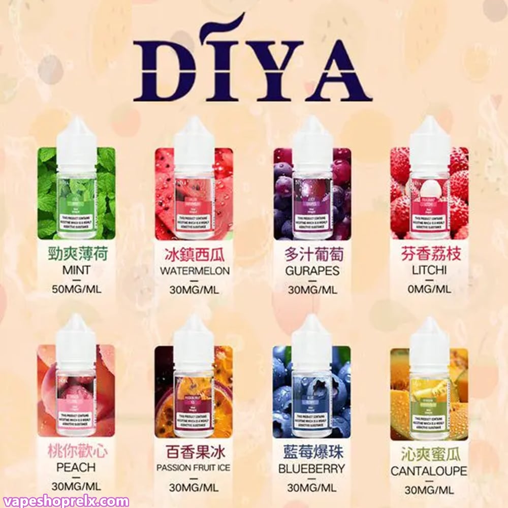 這款Diya煙油目前有15種口味,0-50MG丁鹽濃度,滿足多種需求。經過數十位大師花費數月精心調試,力求這款煙油能最大範圍的滿足顧客味蕾及視覺的需求。